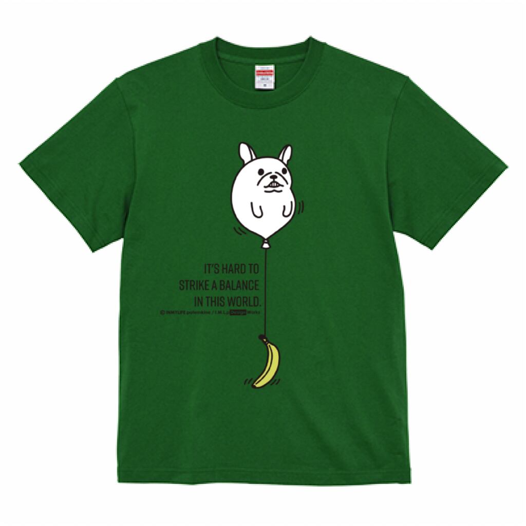 フレンチブルドッグ服専門店のINMYLIFEから、人気の「風船とバナナとバランス」デザインのTシャツが登場です!