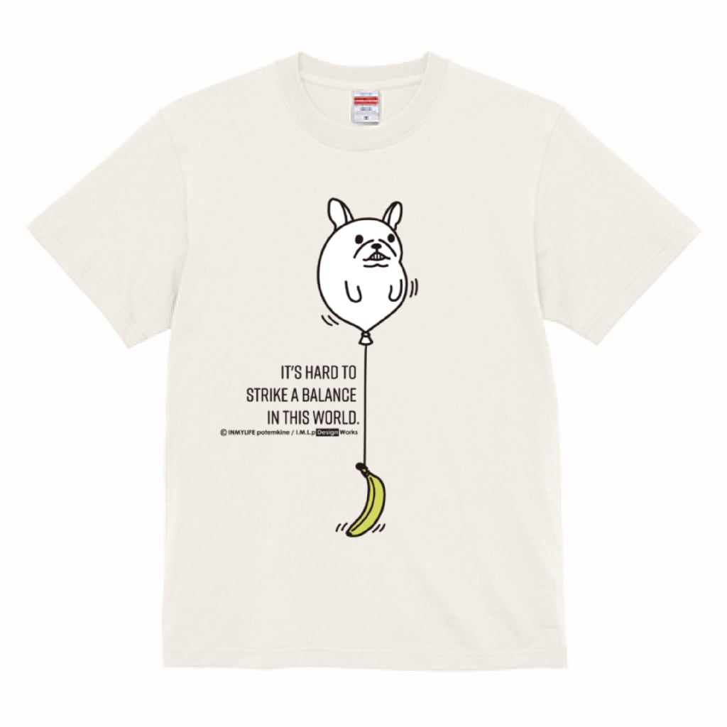 フレンチブルドッグ服専門店のINMYLIFEから、人気の「風船とバナナとバランス」デザインのTシャツが登場です!